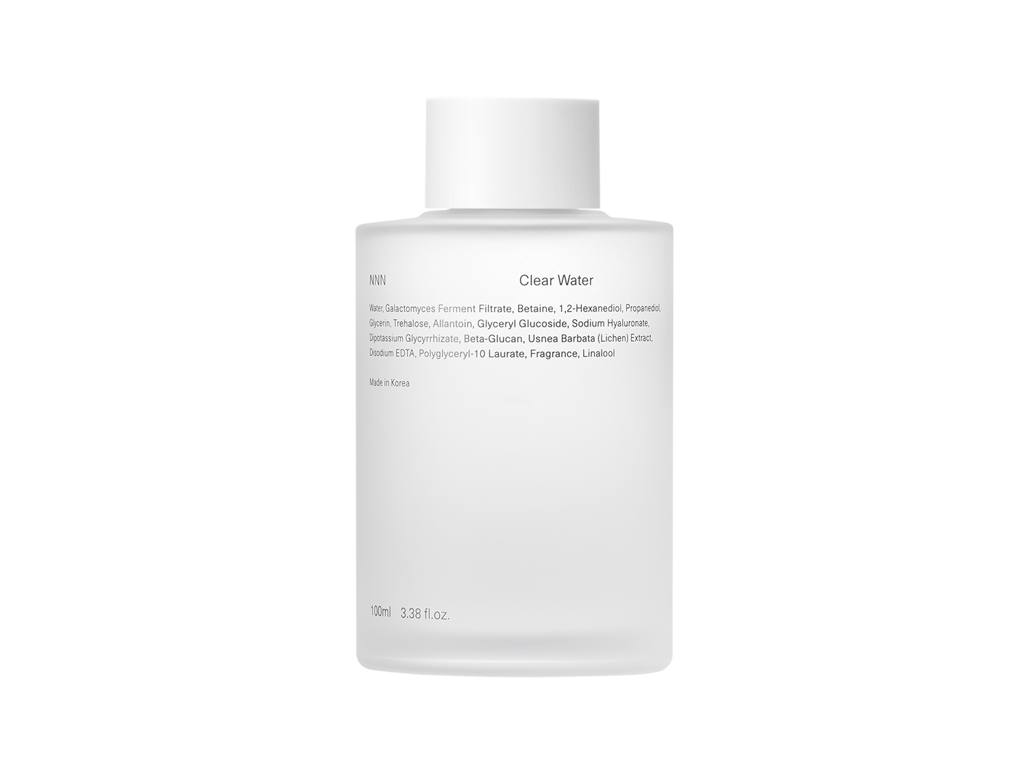 Water, Galactomyces Ferment Filtrate, Betaine, 1,2-Hexanediol, Propanediol, Glycerin, Trehalose, Allantoin, Glyceryl Glucoside, Sodium Hyaluronate, Dipotassium Glycyrrhizate, Beta-Glucan, Usnea Barbata (Lichen) Extract, Disodium EDTA, Polyglyceryl-10 Laurate, Fragrance, Linalool